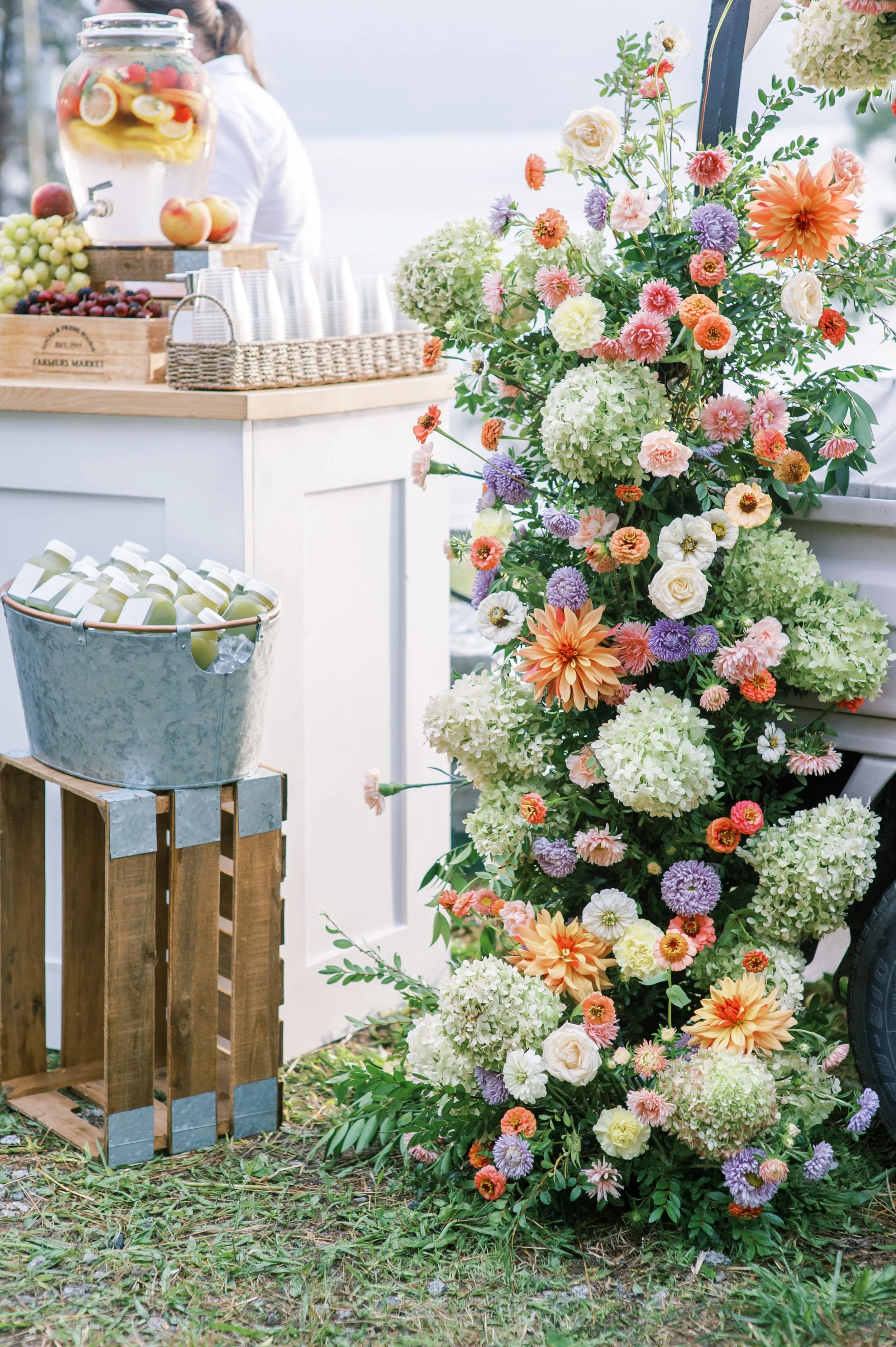 Whimsical welcome floral arches, free-flowing creations over grazing stations, magical stage arrangements, dainty table bud vases, luxury bar cart floral accents, along with artfully disguised technical equipment -who knew an auto-queue could look so darn cute?!
